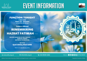 Remembering Hazrat Fatimah (RA) – Function Tonight