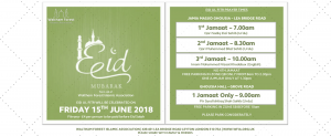 Eid ul Fitr on Friday 15th June 2018