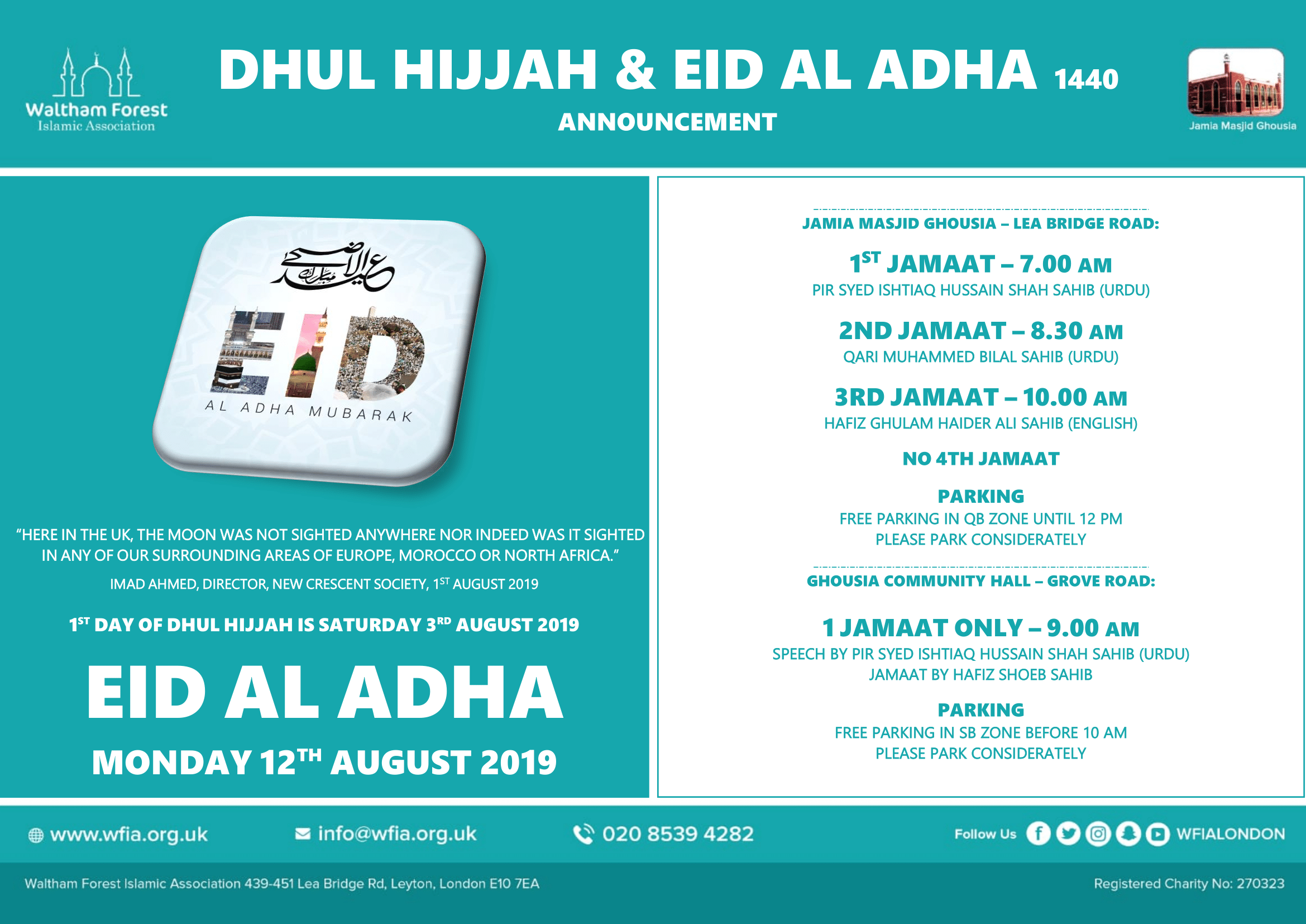 WFIA’s negative moonsighting on Thursday 1st August 2019, reflects other negative moonsighting reports across the UK, as mentioned by Imad Ahmed, Director New Crescent Society in the above report.