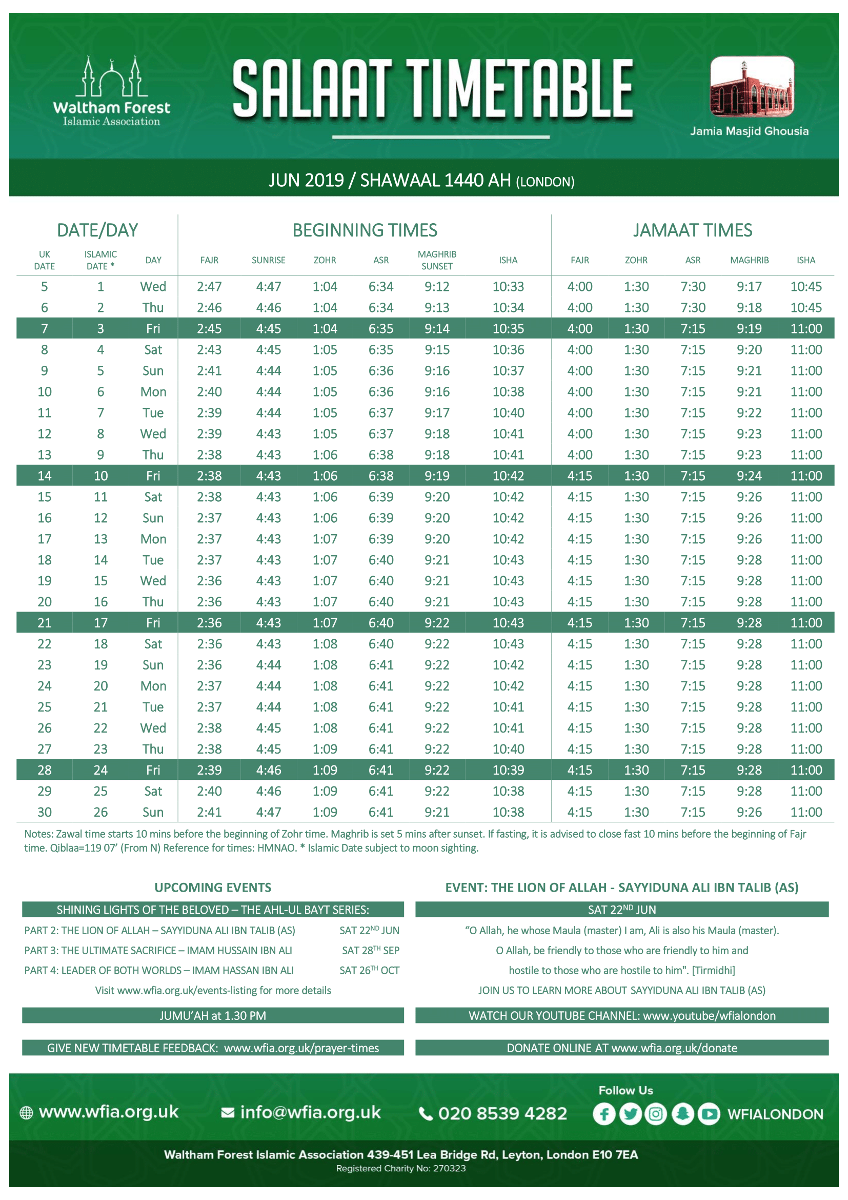 New Salaat Timetable Update