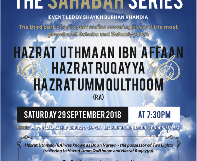 SAHABAH SERIES PART 3 Hazrat Uthman Ibn Affan & Hazrat Ruqayya & Hazrat Umm Qulthoom ★ 29th September At 7:30PM ★...