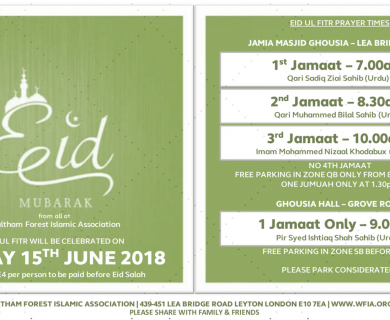 WFIA is pleased to announce that Eid ul Fitr will be on Friday 15th Jun In Sha Allah. Jamaat times and details ...